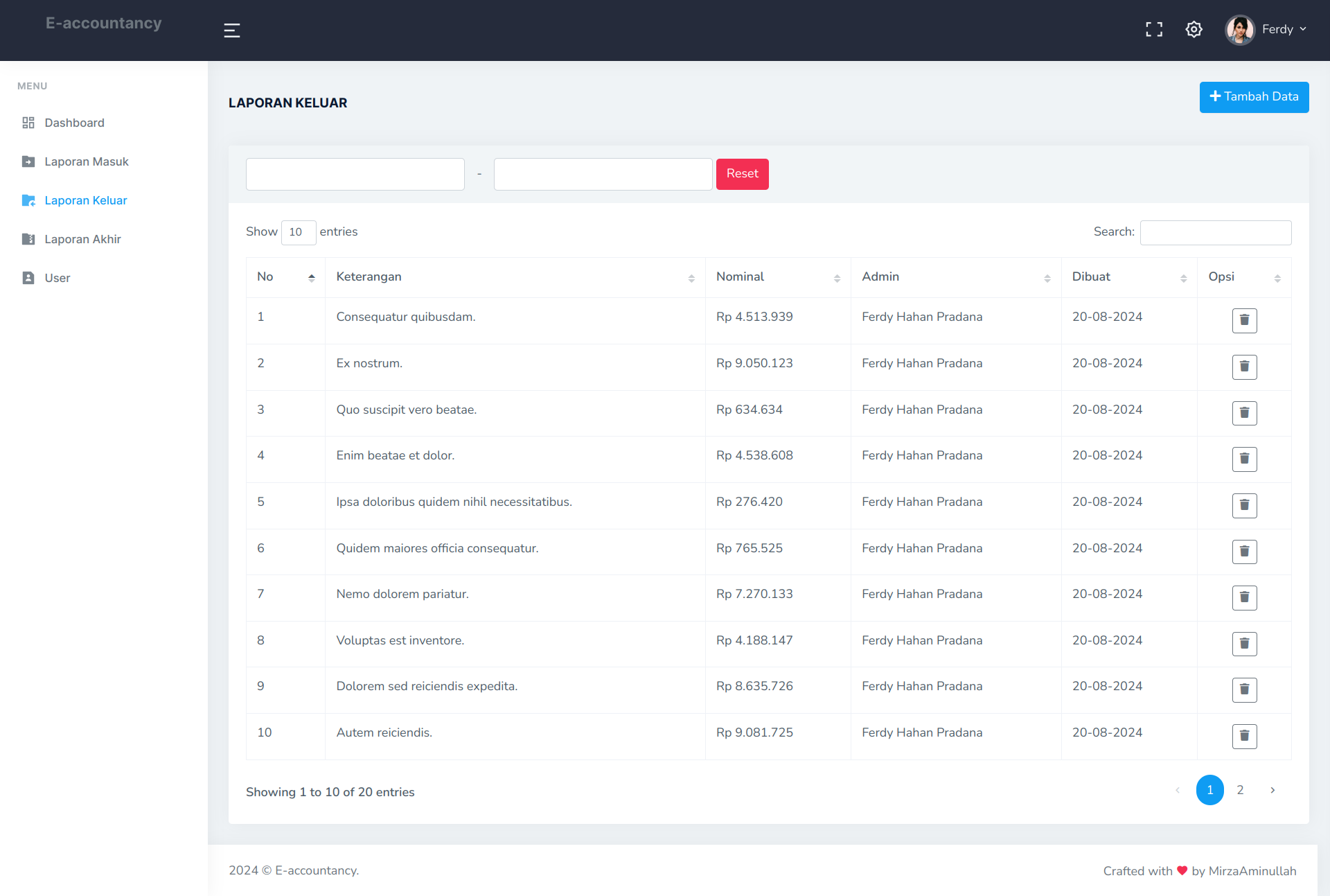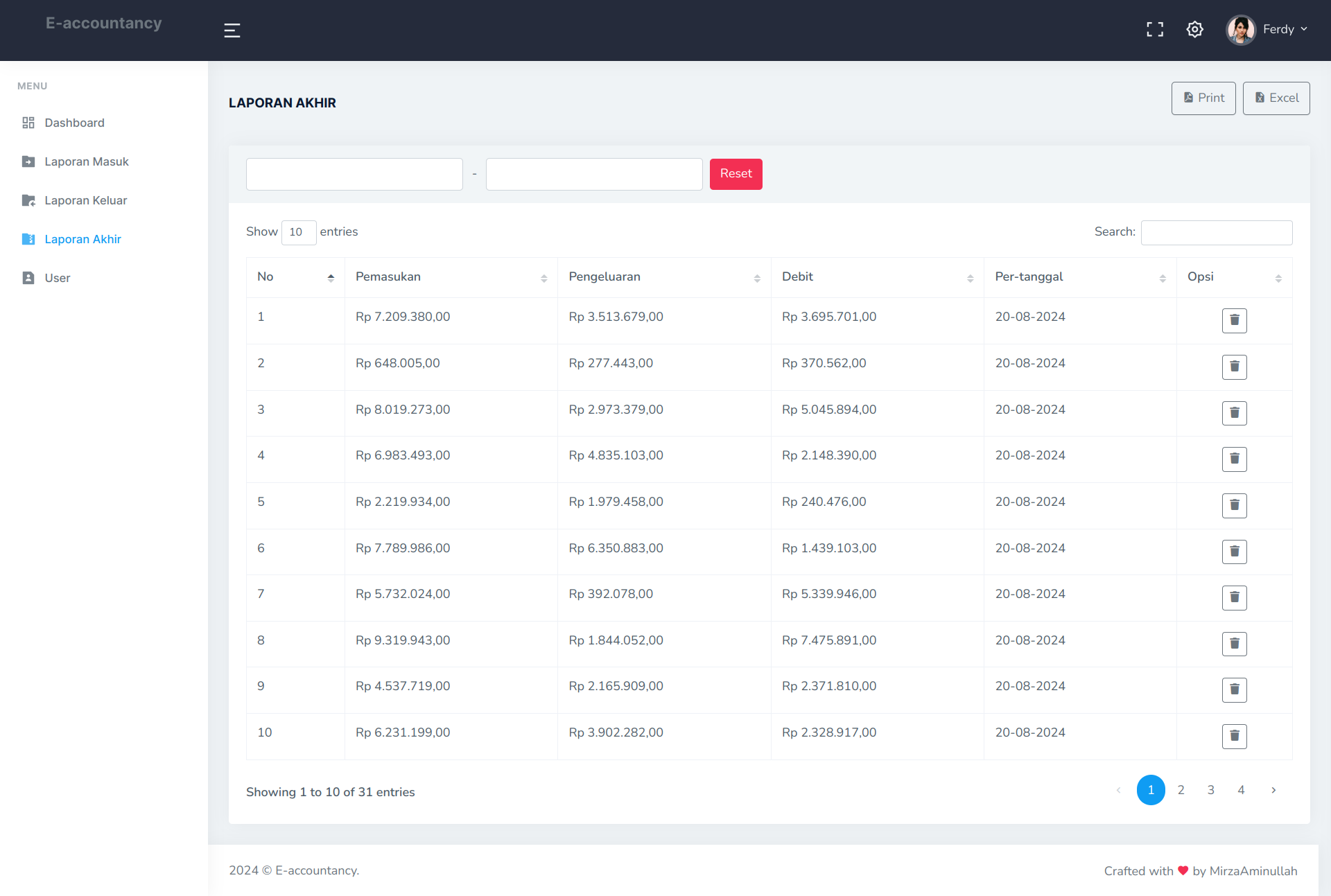 - Outgoing money report management